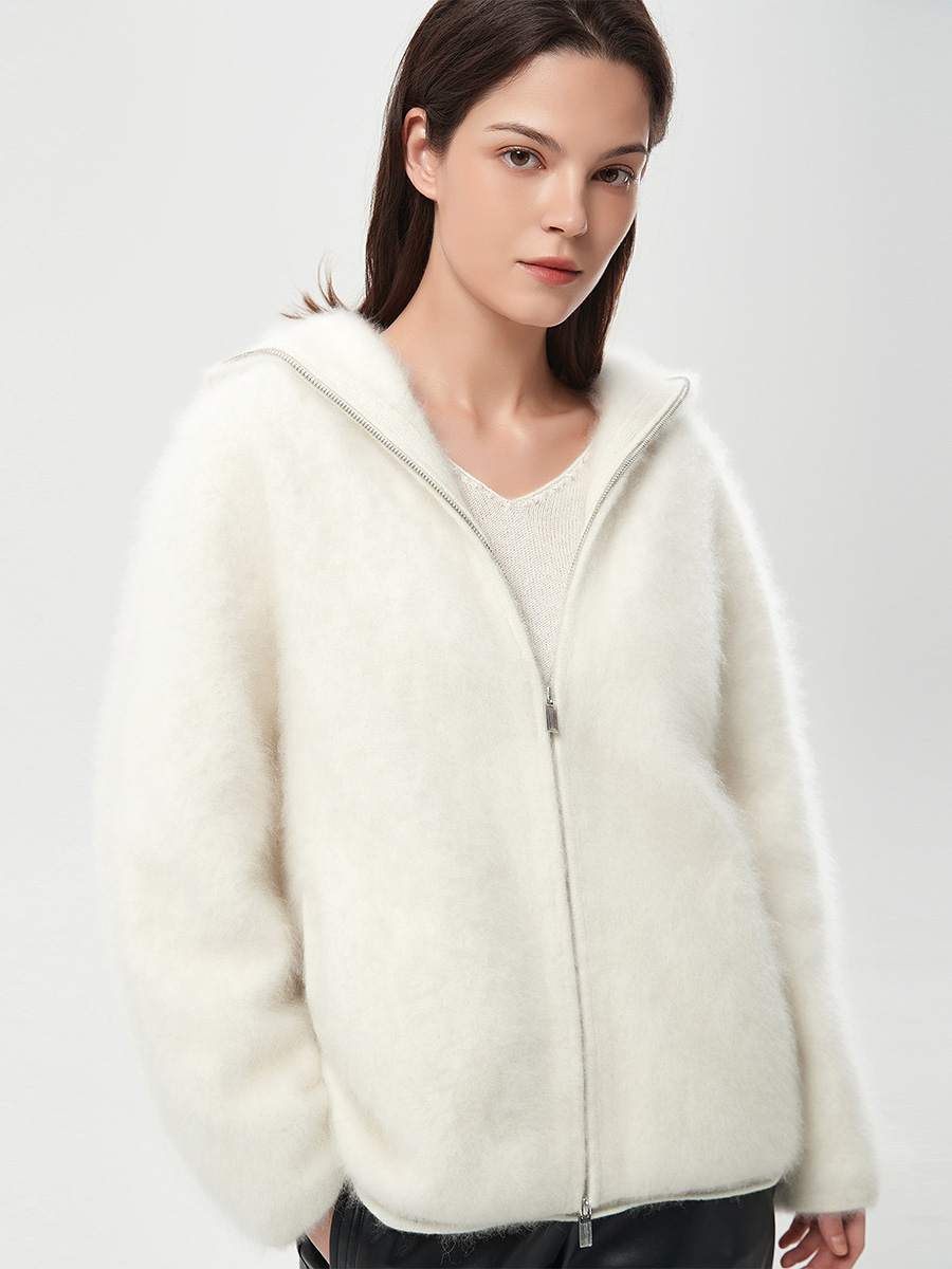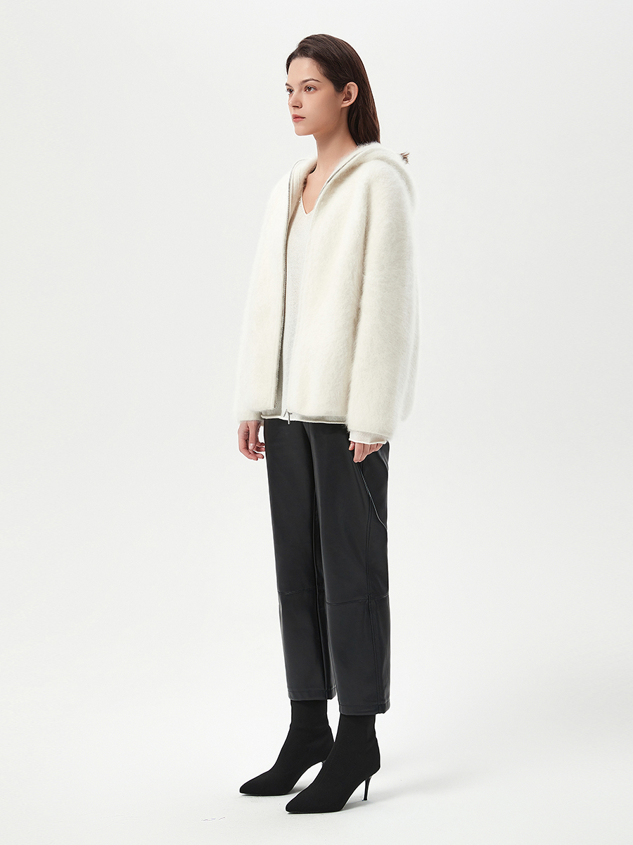 这款单排扣开衫采用珍稀的北美小松鼠制成,辅以格纹提花图案,演绎经典品味。同色系搭配下的色彩和谐统一,主次分明,营造出慵懒随性的风格。